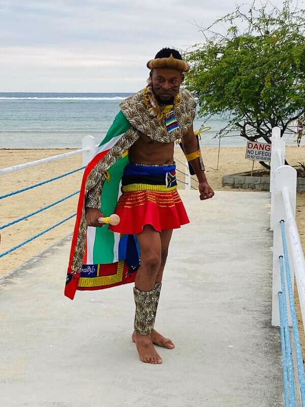 Designed by Freedom Ngomane aka Guga Guru,the costume represented the sold and richness of South Africs and the animal print represented the rich Fauna and Flora that our world-renowned Kruger National Park boasts and including its wildlife experience that ranks with the Best in Africa and the world.