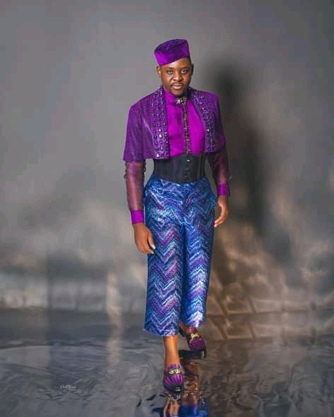 With @ishmael_tsakatsa Creative director of @zarguesia in a cropped shimmer tux encrusted with pink topaz and amethyst gemstones, over a beaded aura quartz organza shirt paired up with 3/4 wide leg brocade pants punctuated with a black transparent corset and sequin velvet cap for the @veekeejamesmasterclass finale night